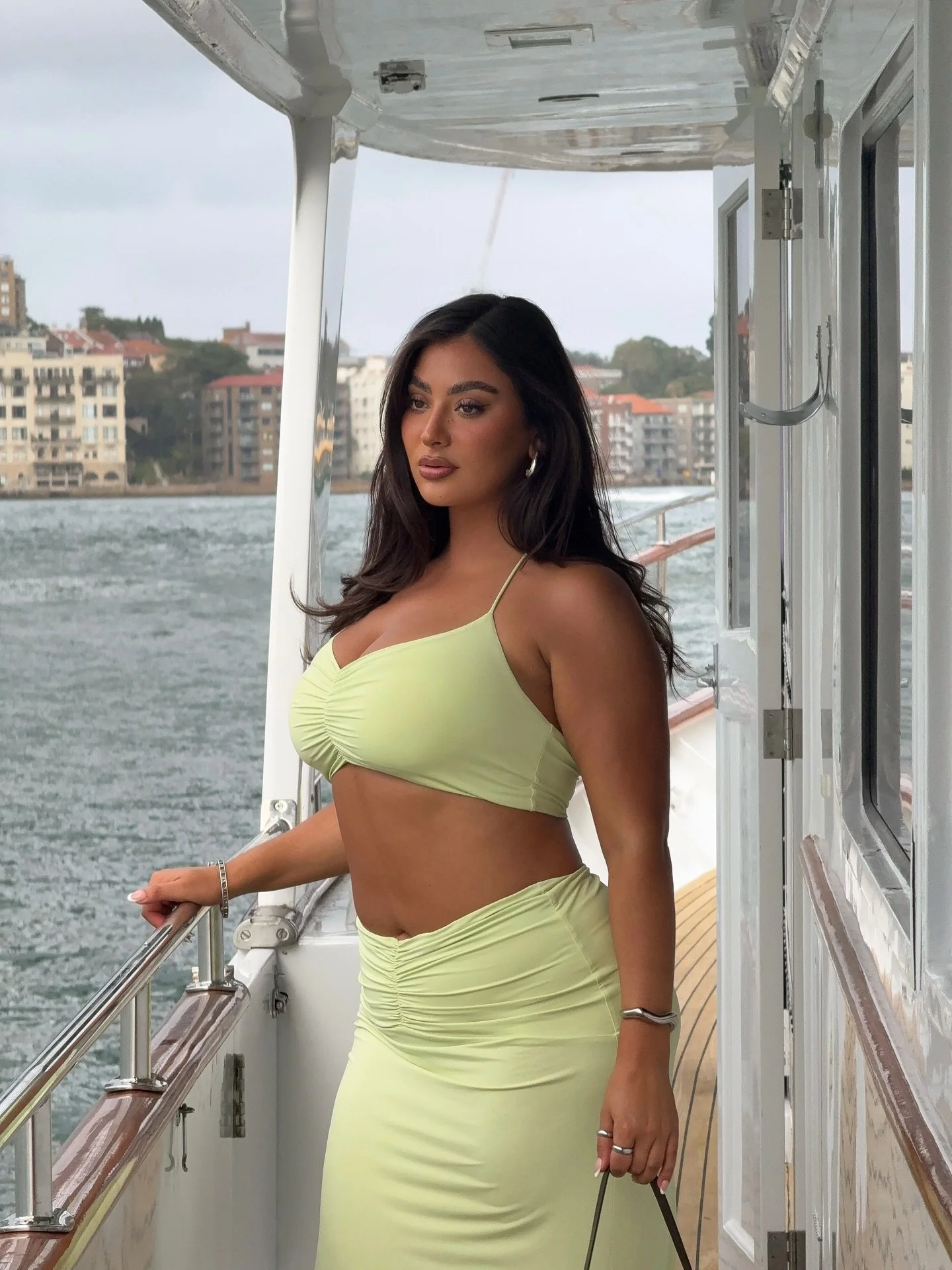 Sarah wears — Wynn Hamlyn suit. Le Buns briefs with stylist’s own bandeau and Zara coat. Anna Quan shirt with Third Form pants.